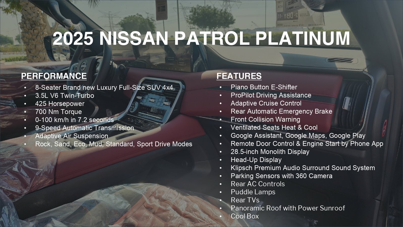 CADILLAC ESCALADE 6.2L V8 PLATINUM SPORT 2025 MERCEDES-BENZ G63 4.0L AMG DOUBL NIGHT PACK BLACK / FIRY RED 2025 TOYOTA LAND CRUISER 4.0L Pick-up 4WD 2Doors BEIGE / BROWN 2025 Nissan patrol platinum 3.5T Model 2025 Black /red